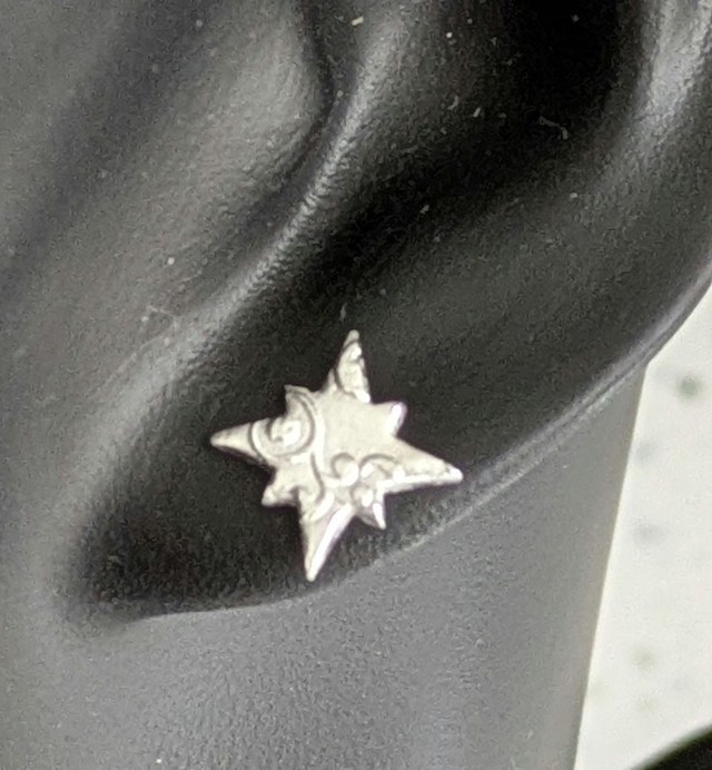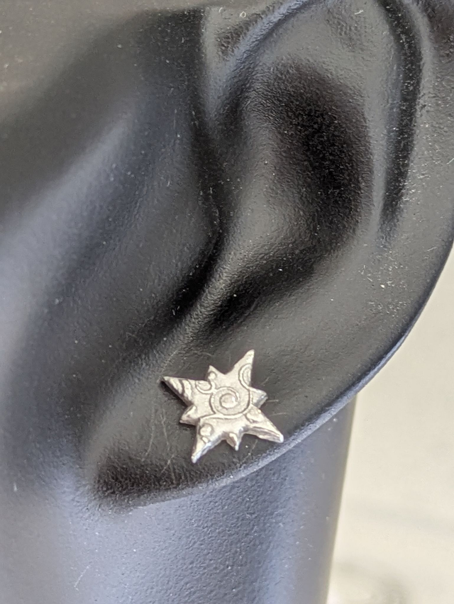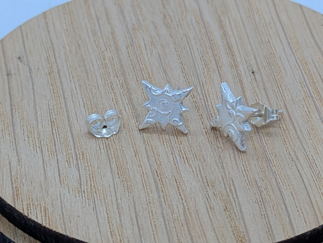 These earrings measure approx 11x11mm. They are designed and handmade in the shape of a compass star with a gentle texutre (the texture may vary from the one shown).