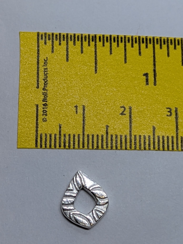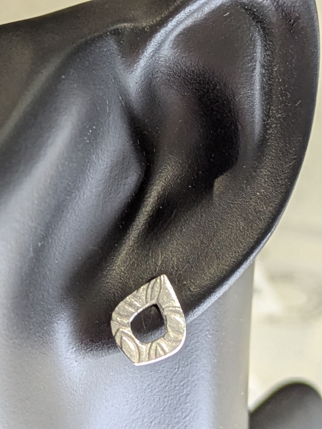These earrings measure approx 12x10mm. They are designed and handmade in the shape of a drop with the middle removed and they are made with a gentle texutre (the texture may vary from the one shown).