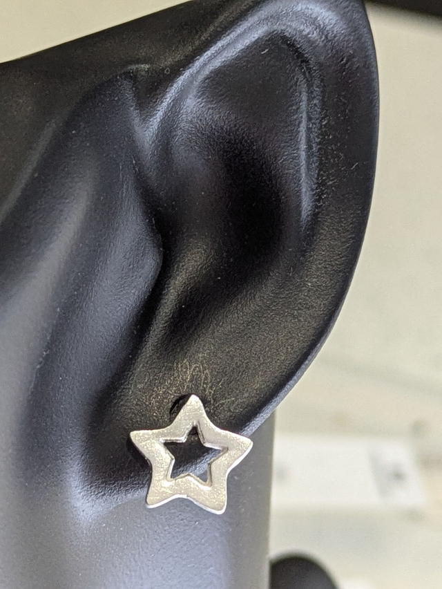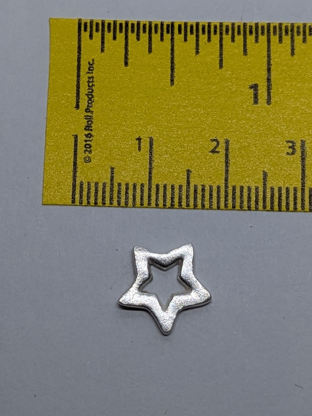 These earrings measure approx 12x12mm. They are designed and handmade in the shape of a star with the middle removed and they are made with a smooth finish.