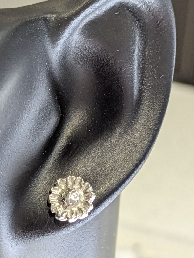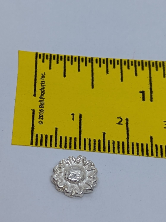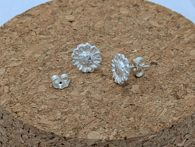 These earrings measure approx 10x10mm. They are designed and handmade in the shape of a natural sunflower.