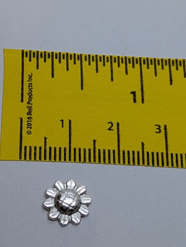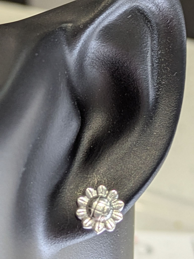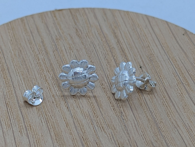 These earrings measure approx 10x10mm. They are designed and handmade in the shape of a sunflower.
