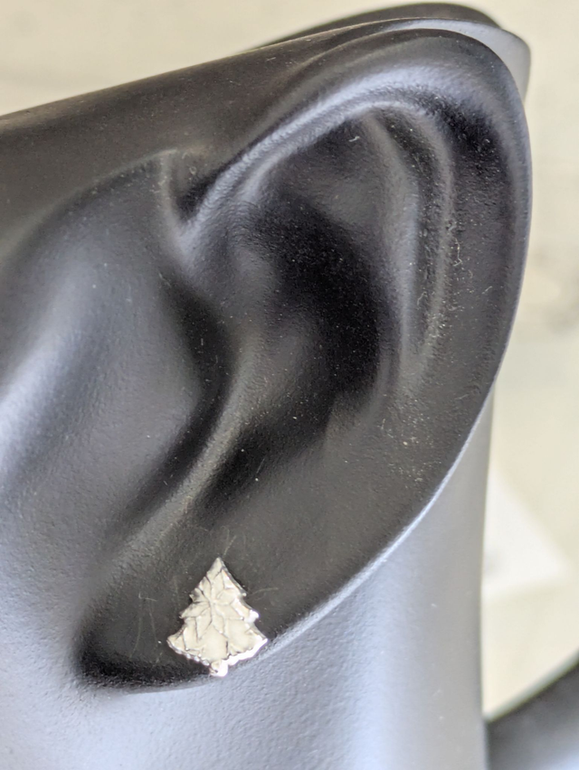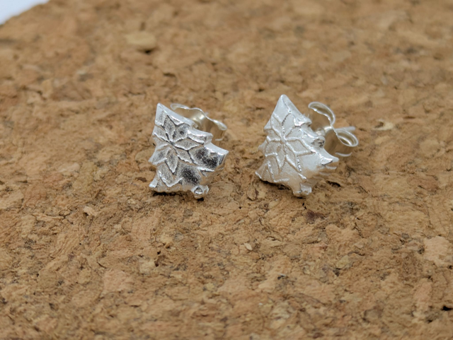 These earrings measure approx 8x7mm. They are designed and handmade in the shape of a traditional Christmas tree with a gentle texutre (the texture may vary from the one shown).