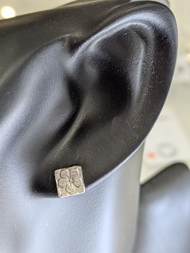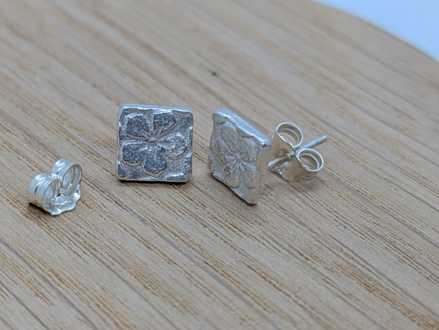 These earrings measure approx 7x7mm. They are designed and handmade in the shape of a square with a gentle flower texutre (the texture may vary from the one shown).