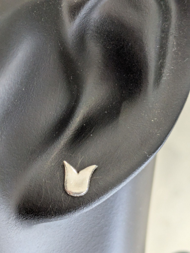 These earrings measure approx 7x6mm. They are designed and handmade in the shape of a tulip with a smooth texutre.