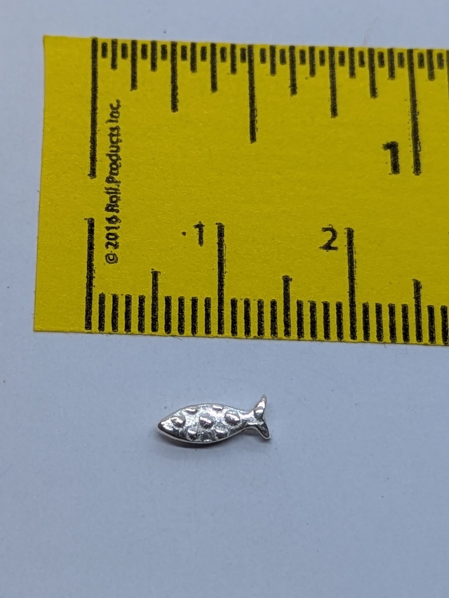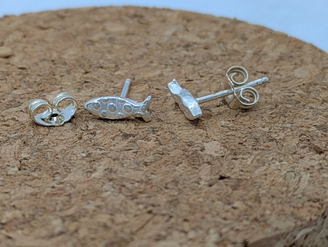 These earrings measure approx 9x4mm. They are designed and handmade in the shape of a little fish, and gently textured (the texture may very from the design shown).