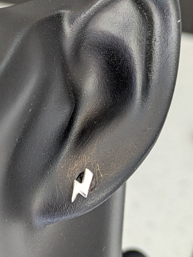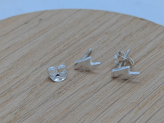 These earrings measure approx 8x4mm. They are designed and handmade in the shape of a smooth lightning bolt.
