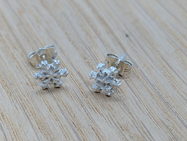 These earrings measure approx 6x6mm. They are designed and handmade in the shape of a little snowflake- a subtle way to be Christmassy! Also available in XSmall size.