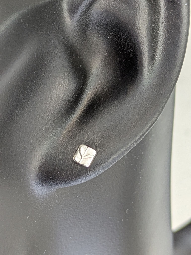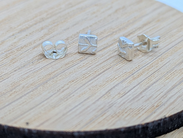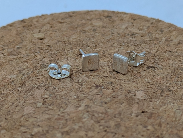 These earrings measure approx 4x4mm. They are designed and handmade in the shape of a square. You can choose a finish of a smooth or textured design (the texture may vary from the photo).