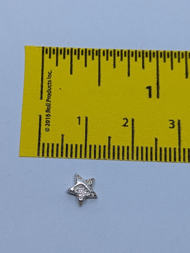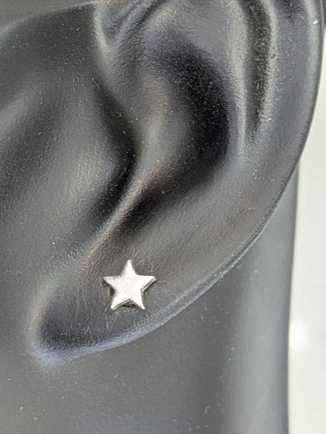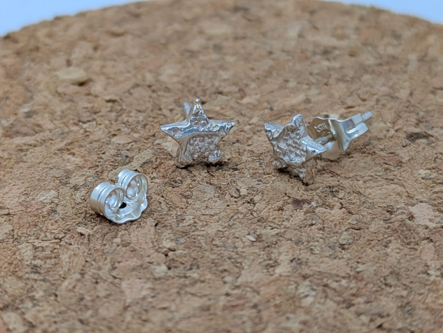 These earrings measure approx 7x7mm. They are designed and handmade in the shape of a small star with a choice of a smooth finish or a gentle texutred finish, texture may vary from the photo shown.