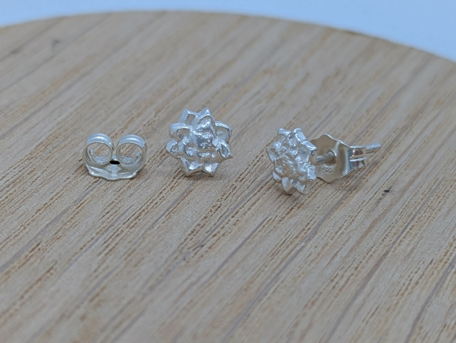These earrings measure approx 6x6mm. They are designed and handmade in the shape of and with the texture of a succulent plant. Also available in Small size.