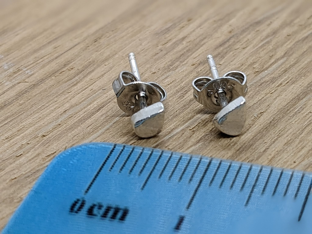These earrings measure approx 3x4mm. They are designed and handmade in the shape of a drop shape with a smooth texutre.