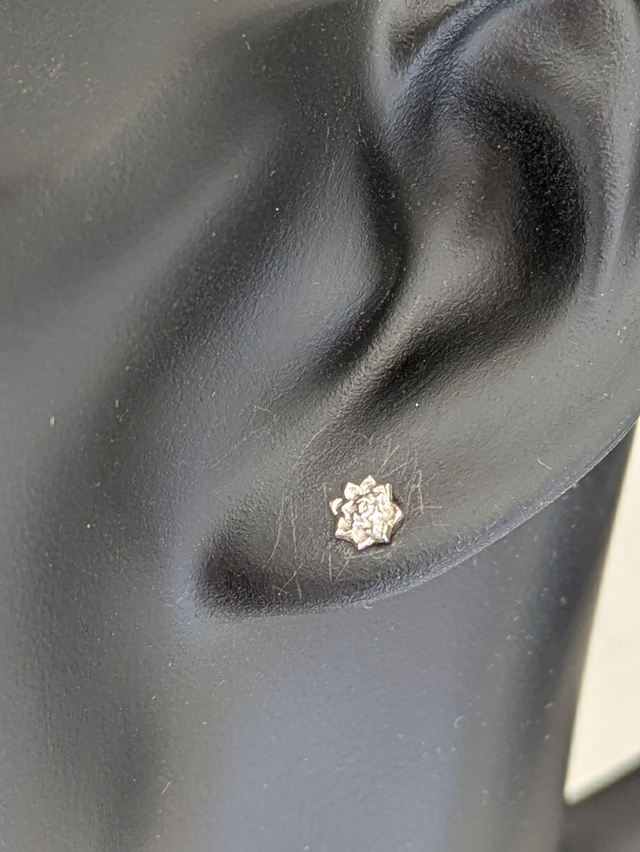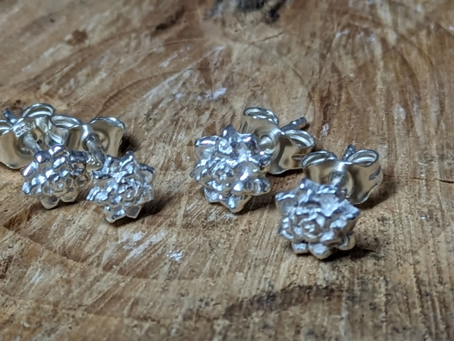 These earrings measure approx 5x5mm. They are designed and handmade in the shape of and with the texture of a succulent plant. Also available in Small size.